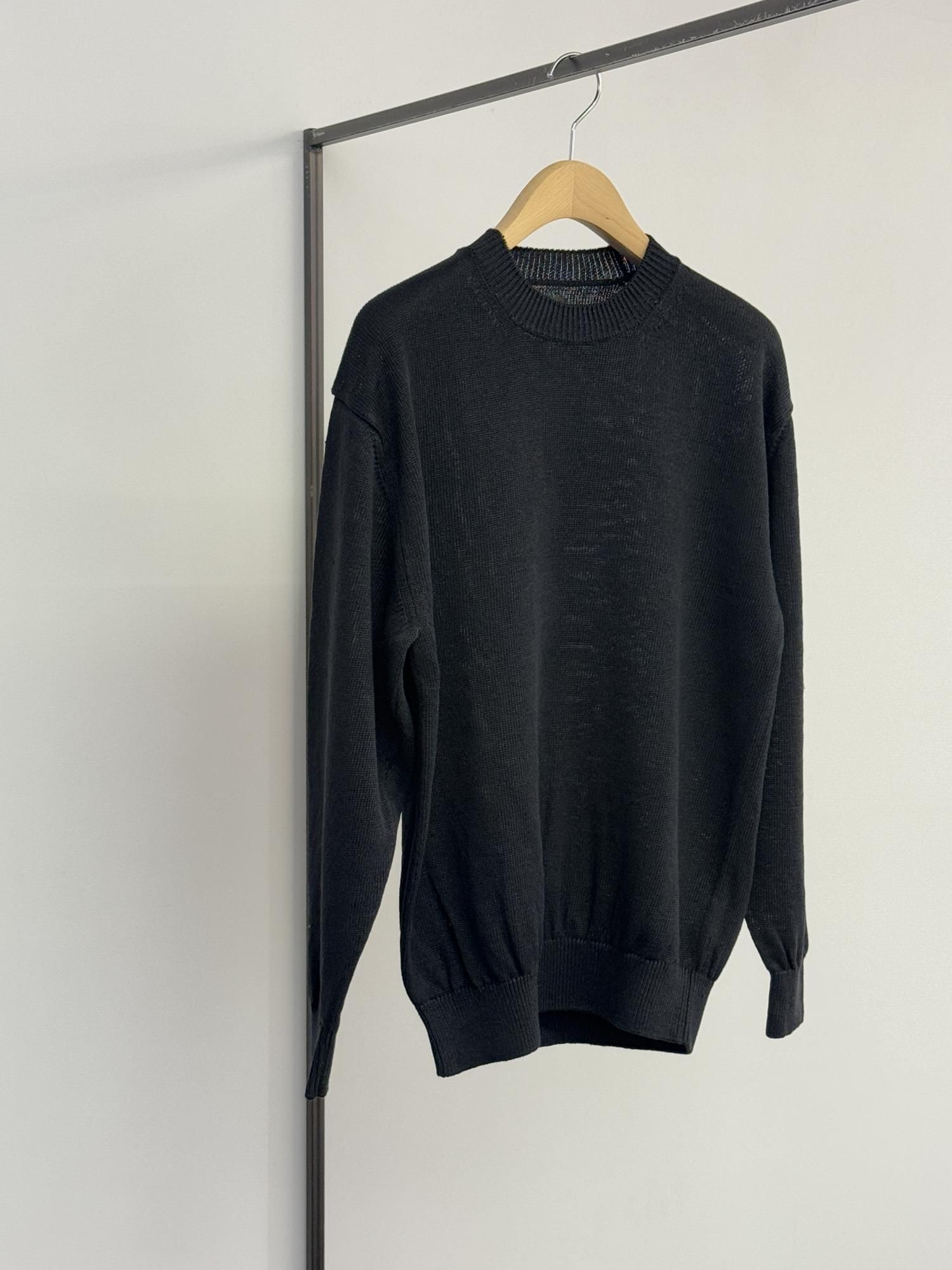 BATONER WASHED HIGH COUNT LINEN CREW NECK(BLACK)
